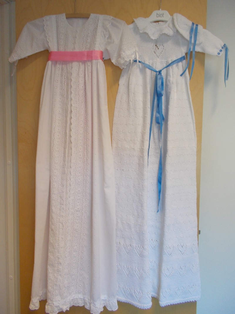 De kan låna dåpskjole på kyrkjekontoret. Det er to dåpekjolar til utlån: